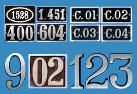 | Números fundidos em alumínio ou bronze. |